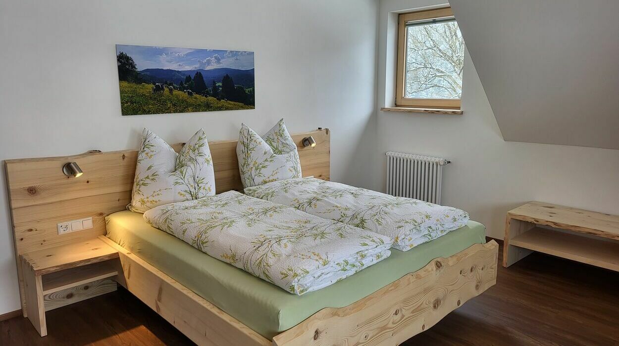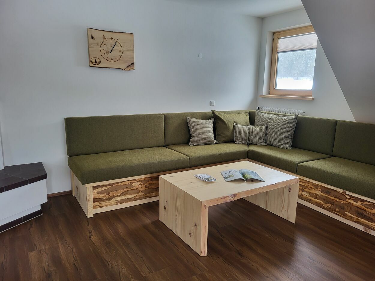 Auf 105 m² Wohnfläche bietet unsere liebevoll und freundlich eingerichtete Ferienwohnung Platz für insgesamt 5 Personen. Vom Schreiner aus der Region wurden die Möbel aus eigenem Tannenholz angefertigt.
