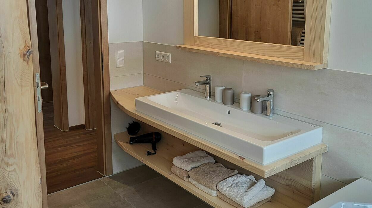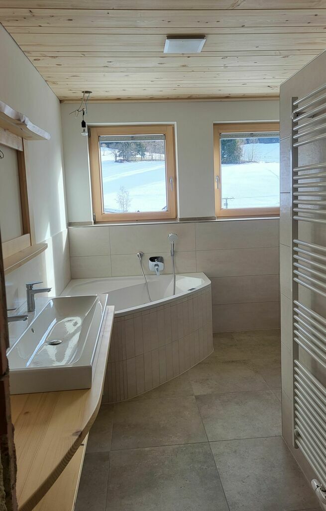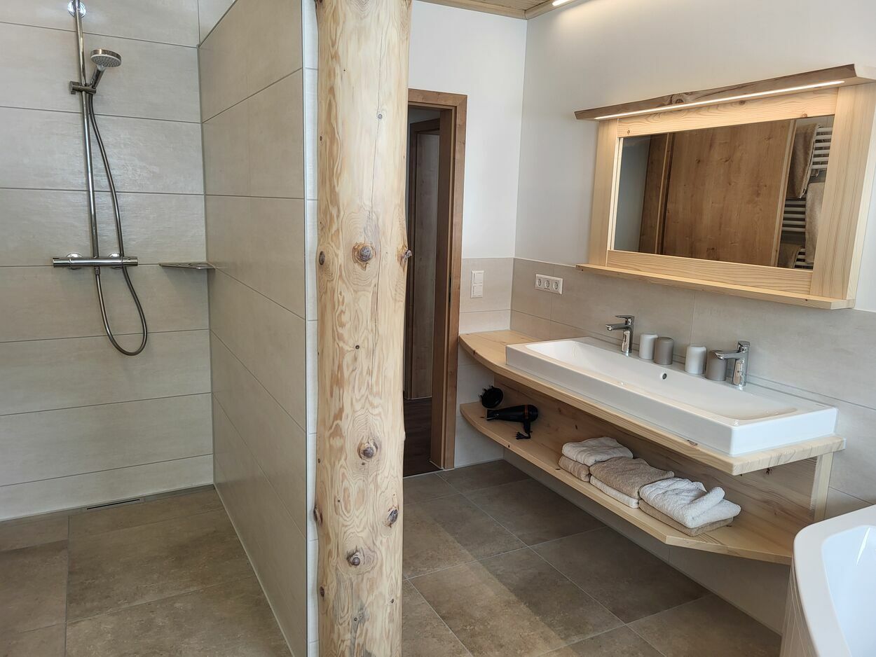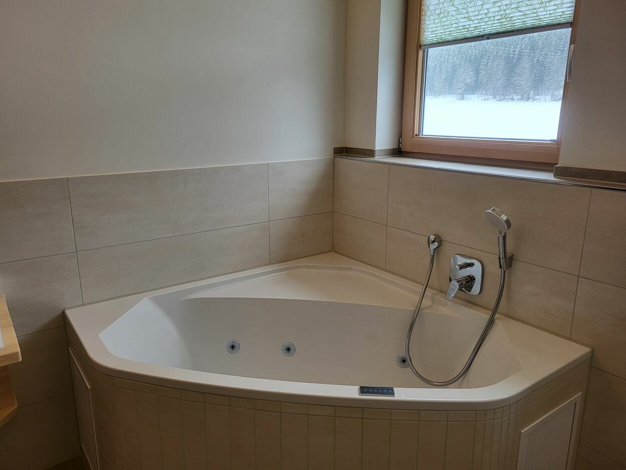 - Bad mit Whirlwanne und Erlebnisdusche, Handtuchheizkörper, WC, Fön, Kosmetikspiegel, Badhocker und zusätzliches WC.